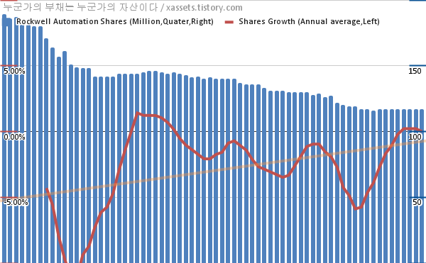 로크웰 오토메이션 자사주 매입 차트 (2005년~2022년)