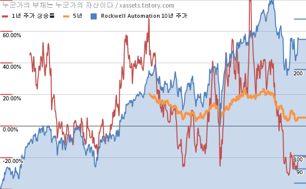 - 포스팅일 기준, 로크웰 오토메이션의 1, 3, 5, 10년 연평균 주가상승률은 -19.51%, 13.10%, 5.32%, 12.80%이다.