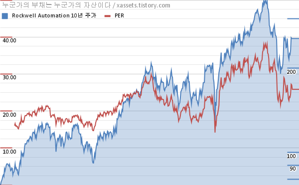 로크웰 오토메이션 PER 차트 (2013년~2022년)