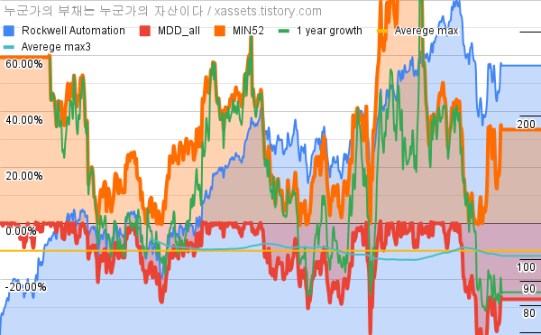 - Rockwell Automation의 10년 평균 MDD는 -9.79%고, 52주 최저가 대비 평균 상승률은 31.71%다.