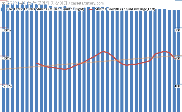 에스티 로더 자사주 매입 차트 (2013년~2022년)