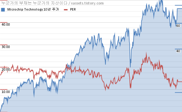 마이크로칩 테크놀로지 PER 차트 (2013년~2022년)