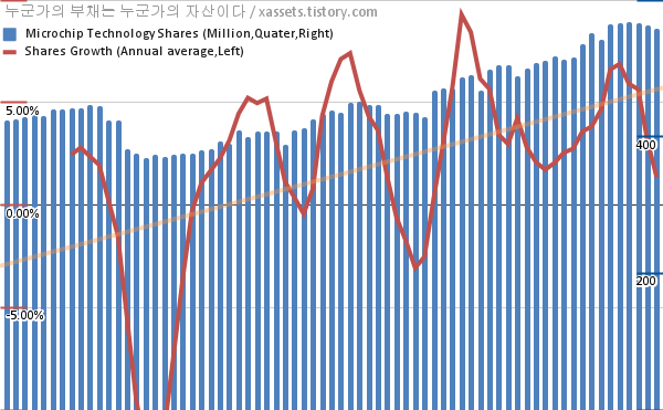 마이크로칩 테크놀로지 자사주 매입 차트 (2005년~2022년)