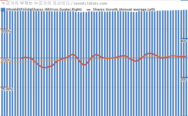 호멜 푸드 자사주 매입 소각 차트 (2005년~2022년)