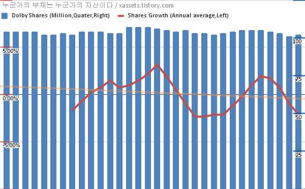- 지난 1년 동안 돌비는 평균 2.15%의 자사주를 매입-소각했다.