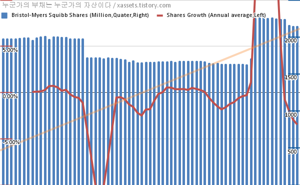 브리스톨-마이어스 스퀴브 자사주 매입 소각 차트 (2005년~2022년)
