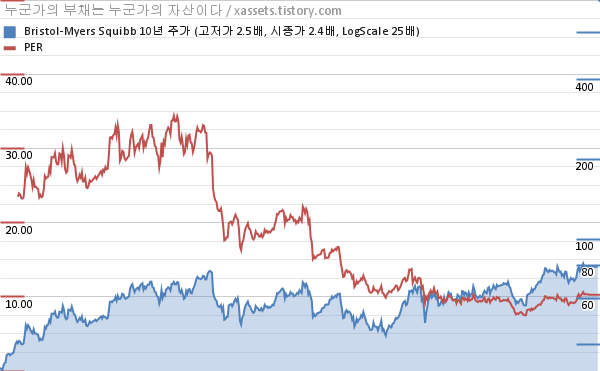 브리스톨-마이어스 스퀴브 PER 차트 (2013년~2022년)