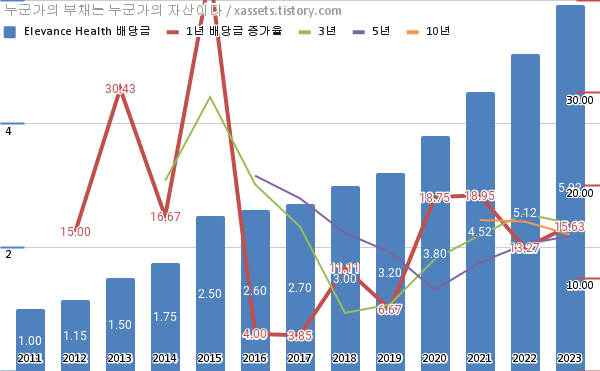 엘레반스 헬스 배당금 및 배당성장률 차트 (2011년~2023년)
