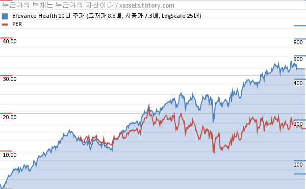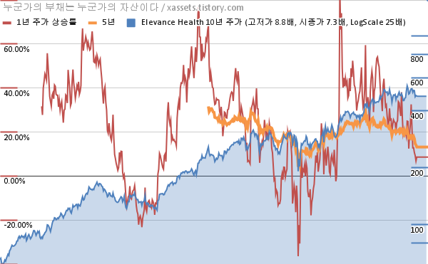 - 포스팅일 기준, 엘레반스 헬스의 1, 3, 5, 10년 연평균 주가상승률은 8.59%, 17.27%, 13.18%, 22.06%이다.