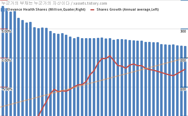 엘레반스 헬스 자사주 매입 소각 차트 (2011년~2022년)