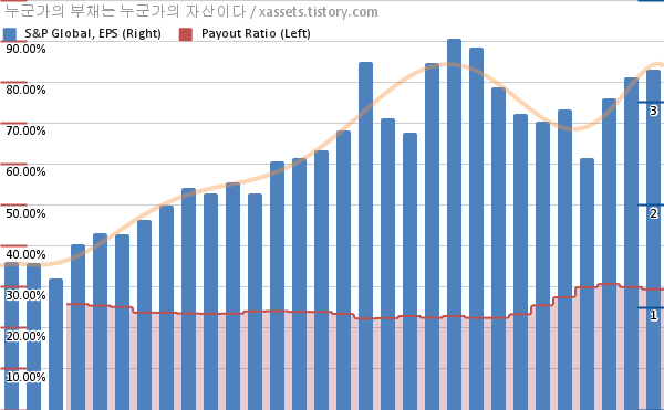 - S&P 글로벌은 1973년부터 51년 연속으로 배당금을 증액하고 있다.