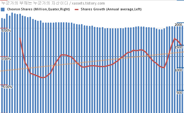 셰브런 자사주 매입 소각 차트 (2005년~2022년)