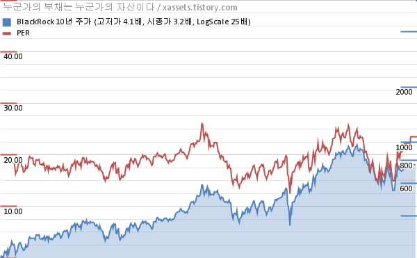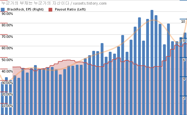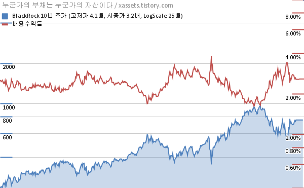 - 블랙록은 자산운용사중에서 상당히 배당수익률 밴드가 명확하다. 또 장기적인 주가성장도 비교적 일정하다.