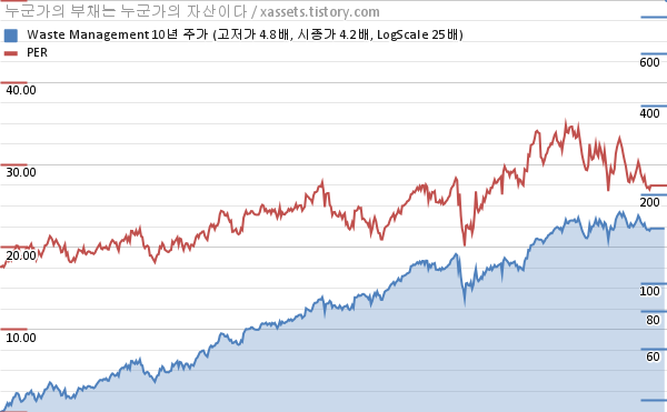 웨이스트 매니지먼트 PER 차트 (2013년~2023년)