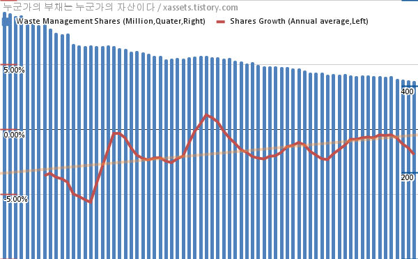- 지난 1년 동안 웨이스트 매니지먼트는 평균 1.95%의 자사주를 매입-소각했다.