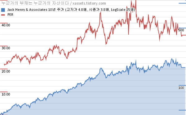 잭 헨리 앤 어소시에이츠 PER 차트 (2013년~2023년)