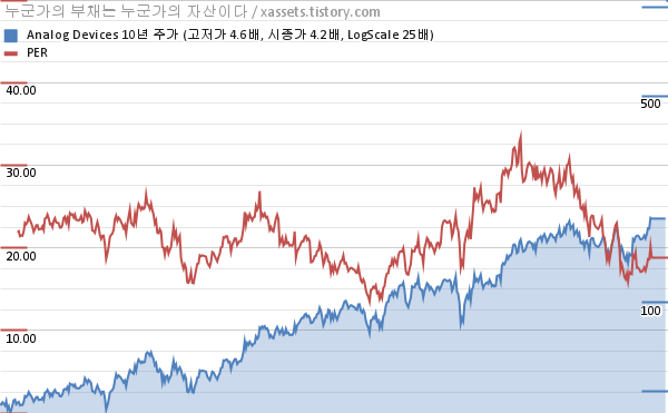 아날로그 디바이스 PER 차트 (2013년~2023년)