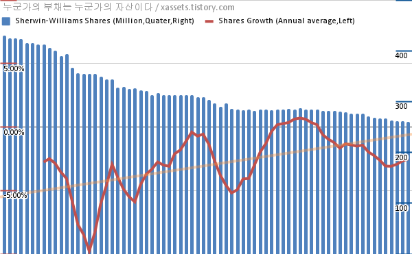- 지난 1년 동안 셔윈 윌리엄즈는 평균 2.52%의 자사주를 매입-소각했다.