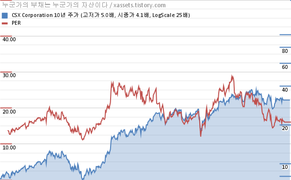 CSX 주식회사 PER 차트 (2013년~2023년)