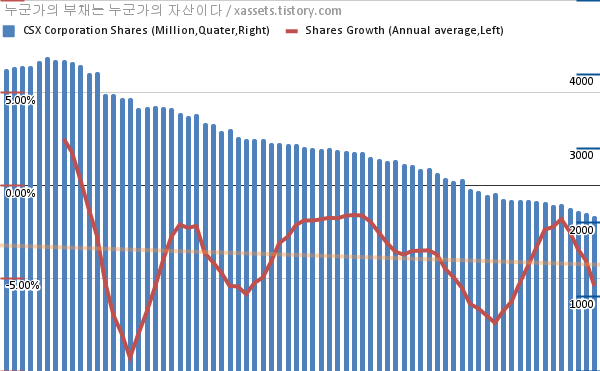 CSX 주식회사 자사주 매입 소각 차트 (2005년~2022년)