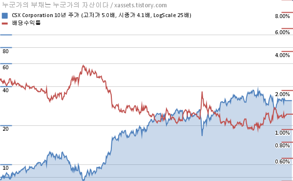 - CSX 주식회사는 2005년부터 19년 연속으로 배당금을 증액하고 있다.