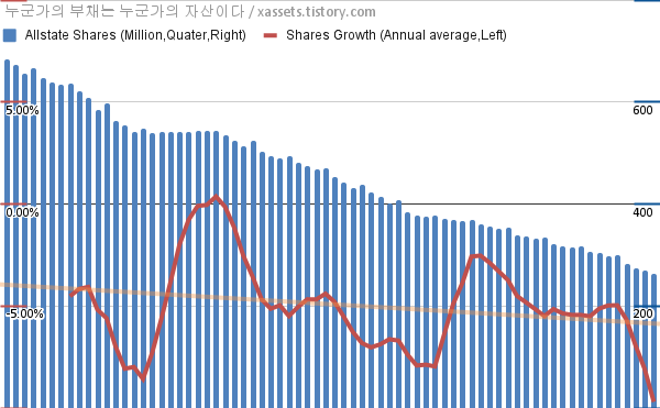 올스테이트 자사주 매입 소각 차트 (2005년~2022년)