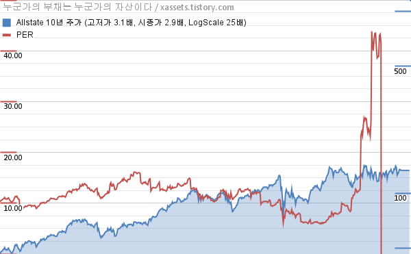 올스테이트 PER 차트 (2013년~2023년)