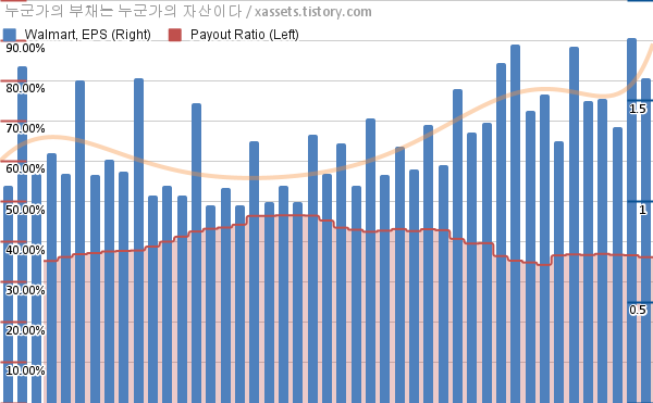 - 월마트의 최소 배당성장 추세가 2014년부터 계속 이어지고 있다.