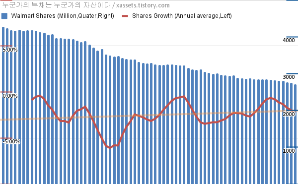 - 지난 1년 동안 월마트는 평균 2.30%의 자사주를 매입-소각했다.