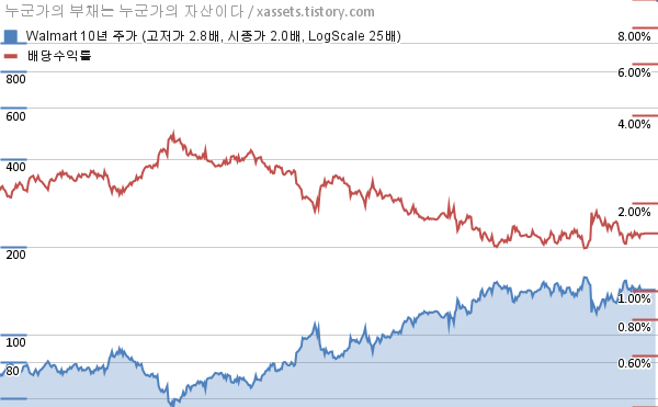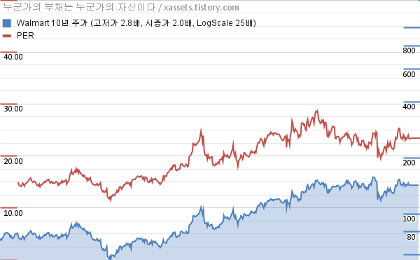 - 배당이나 수익에 비해 PER이 높은 편이다. PER이 20배가 넘는데 월마트라서 가능한 수치다.