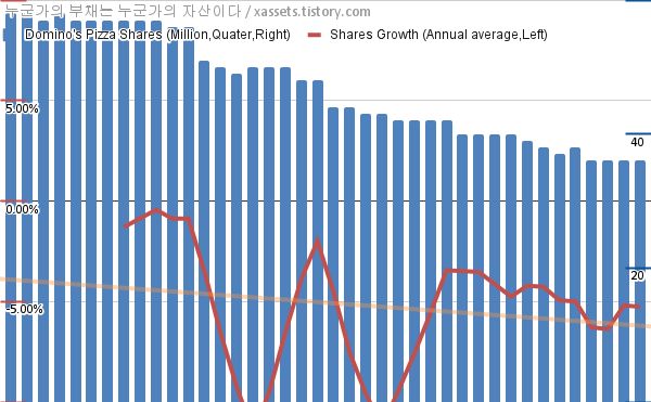 - 지난 1년 동안 도미노피자는 평균 5.26%의 자사주를 매입-소각했다.