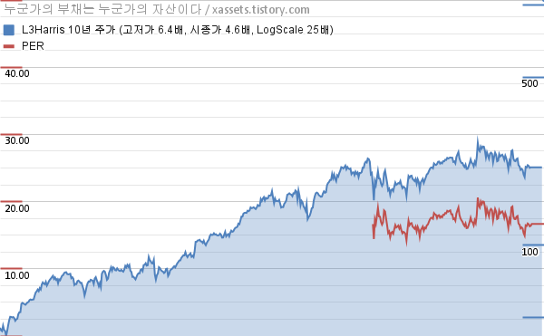 - 포스팅일 기준, L3해리스의 1, 3, 5, 10년 연평균 주가상승률은 -10.00%, 2.05%, 6.43%, 16.55%이다.