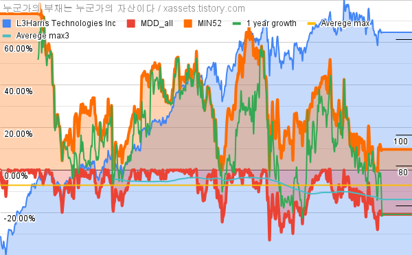 - L3해리스의 10년 평균 MDD는 -7.16%고, 52주 최저가 대비 평균 상승률은 29.79%다.
