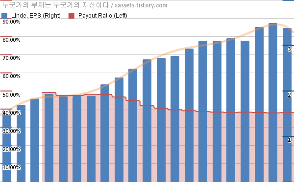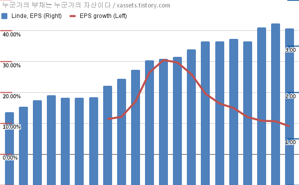- 포스팅일 기준, 린데의 1년 연평균 EPS 성장률은 9.03%이다.
