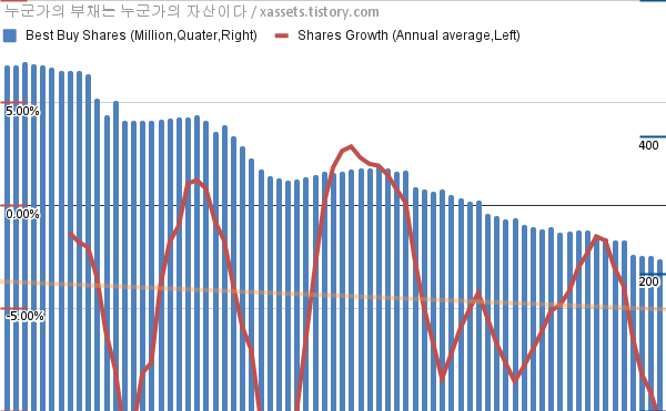 베스트 바이 자사주 매입 소각 차트 (2005년~2023년)