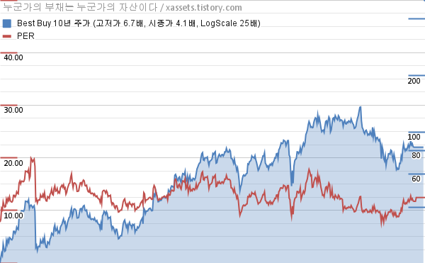 베스트 바이 PER 차트 (2013년~2023년)