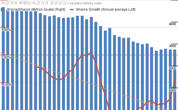 - 지난 1년 동안 오라클은 평균 4.65%의 자사주를 매입-소각했다.