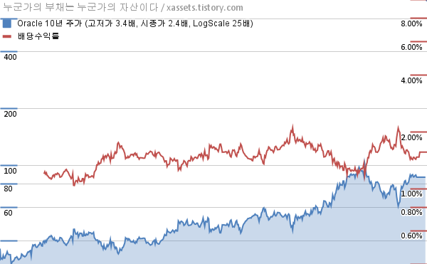 - 오라클은 2014년부터 10년 연속으로 배당금을 증액하고 있다. 참고로 오라클은 2년에 한 번씩 배당금을 증액한다.
