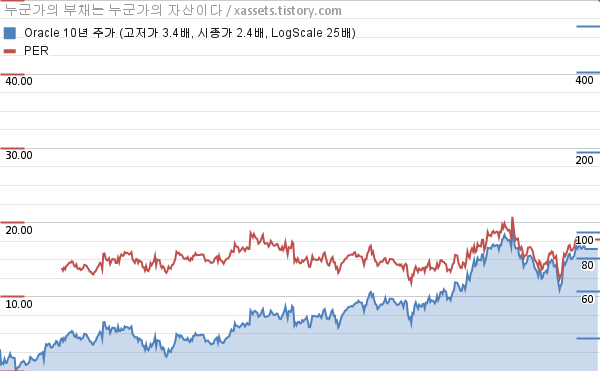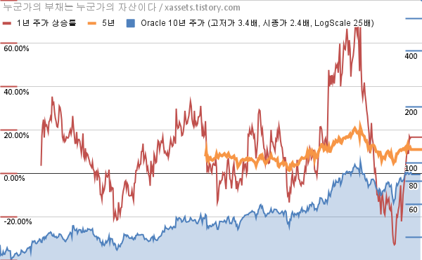 - 포스팅일 기준, 오라클의 1, 3, 5, 10년 연평균 주가상승률은 16.68%, 23.51%, 11.00%, 9.40%이다.