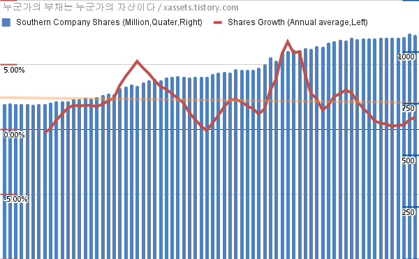 - 지난 1년 동안 서던 컴퍼니는 주식수가 약 0.96% 증가했다.