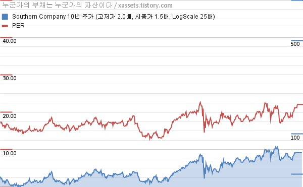 서던 컴퍼니 PER 차트 (2013년~2023년)