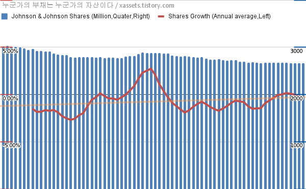 - 지난 1년 동안 존슨앤존슨은 평균 0.32%의 자사주를 매입-소각했다.