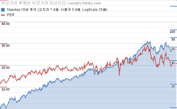 나스닥 PER 차트 (2013년~2023년)