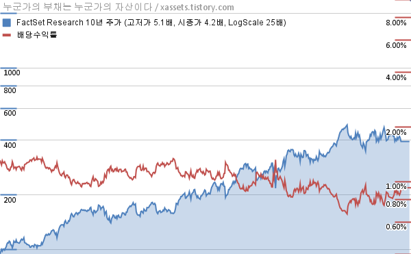 - 팩트셋 리서치는 2000년부터 24년 연속으로 배당금을 증액하고 있다.