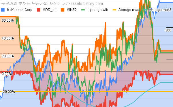 - 매케슨 의 10년 평균 MDD는 -22.54%고, 52주 최저가 대비 평균 상승률은 28.34%다.