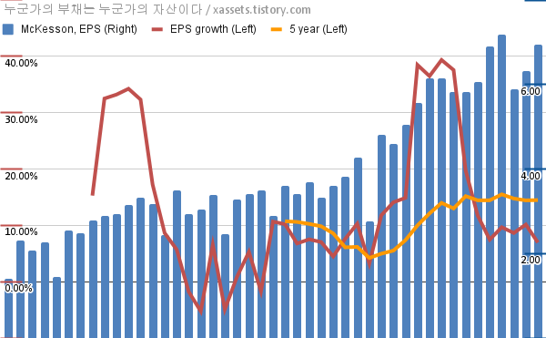 - 포스팅일 기준, 매케슨 의 1, 5년 연평균 EPS 성장률은 6.95%, 14.48%이다.