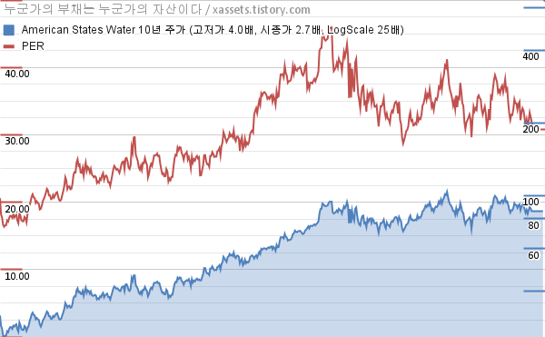 아메리칸 스테이츠 워터 PER 차트 (2013년~2023년)