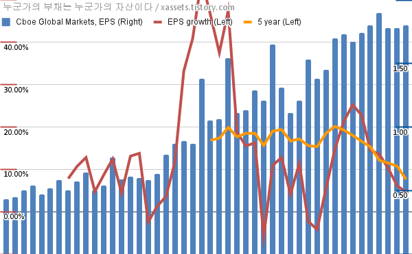 - 포스팅일 기준, 씨보 글로벌 마켓의 1, 5년 연평균 EPS 성장률은 4.61%, 7.62%이다.