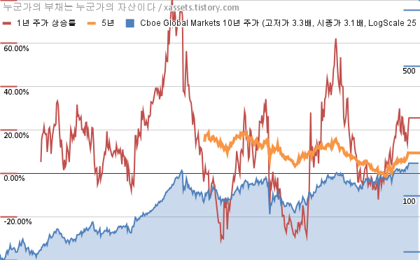 - 포스팅일 기준, 씨보 글로벌 마켓의 1, 3, 5, 10년 연평균 주가상승률은 25.59%, 19.40%, 9.43%, 11.96%이다.