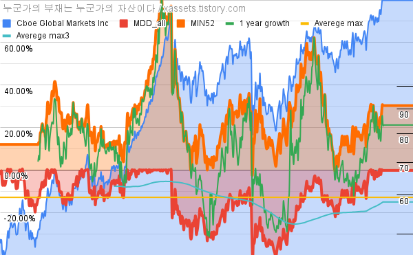 - 씨보 글로벌 마켓의 10년 평균 MDD는 -12.86%고, 52주 최저가 대비 평균 상승률은 25.12%다.